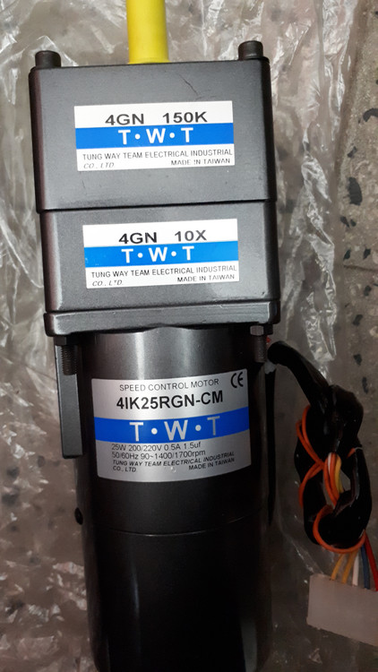 موتور 200V AC مدل 4IK25RGN-CM با گیربکس های کاهنده 4GH 10X و 4GN 150K از برند T.W.T تایوان.