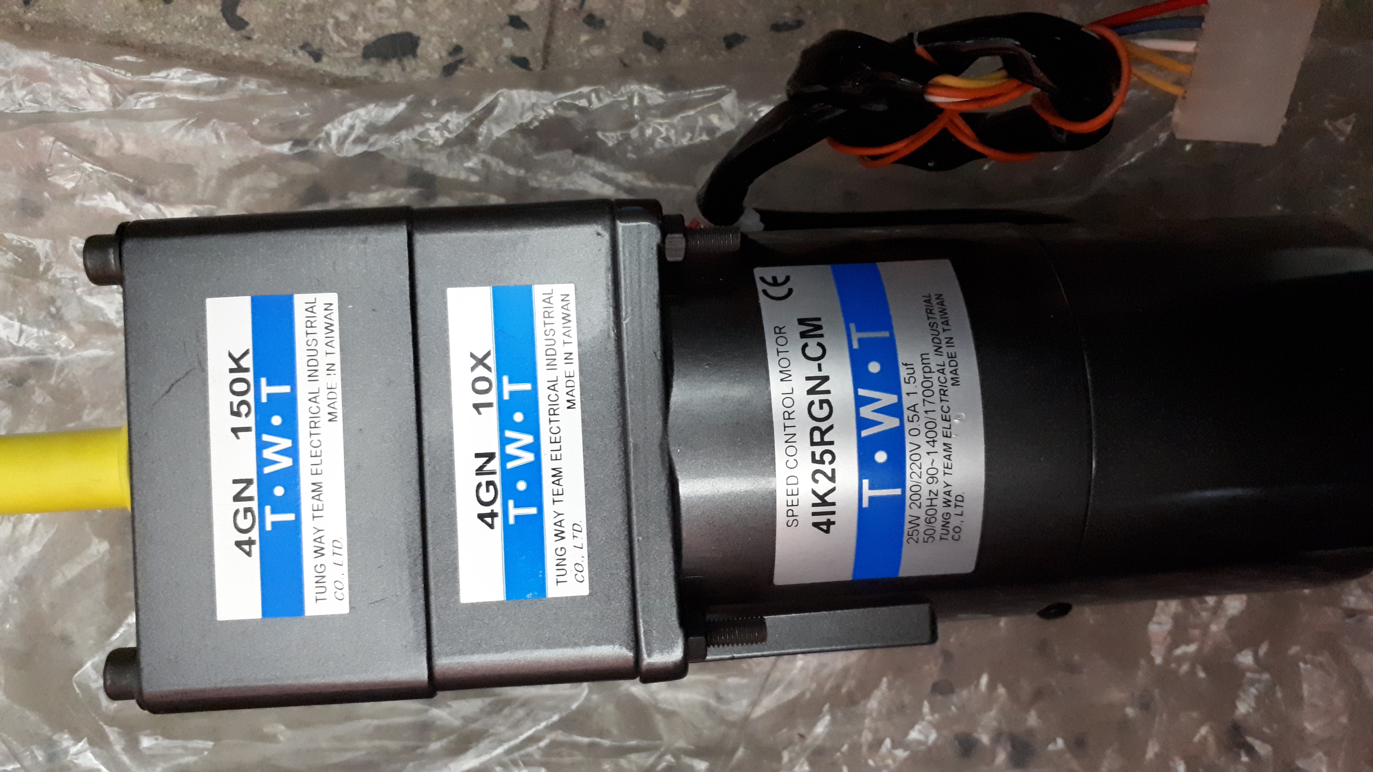 موتور 200V AC مدل 4IK25RGN-CM با گیربکس های کاهنده 4GH 10X و 4GN 150K از برند T.W.T تایوان.